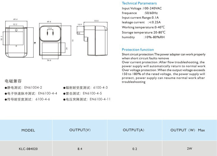 短路保護(hù): 電源適配器在短路解除時(shí)能正常工作恢復(fù)