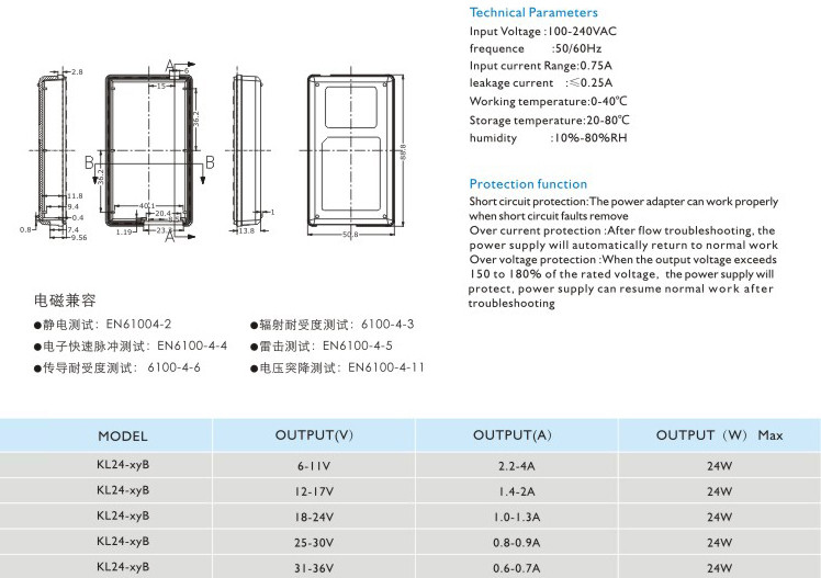 過流保護(hù):過流故障排除后,電源將自動恢復(fù)正常工作 過壓保護(hù):當(dāng)輸出電壓超過額定電壓的150~180%時(shí),電源將保護(hù),故障排除后電源能恢復(fù)正常工作 輸入電壓:100-240VAC 頻率:50/60Hz 輸入電流:0.75A 漏電電流:<0.25A 工作溫度:0-40℃ 貯藏溫度:-20-80℃ 濕度:10%-80%RH" />